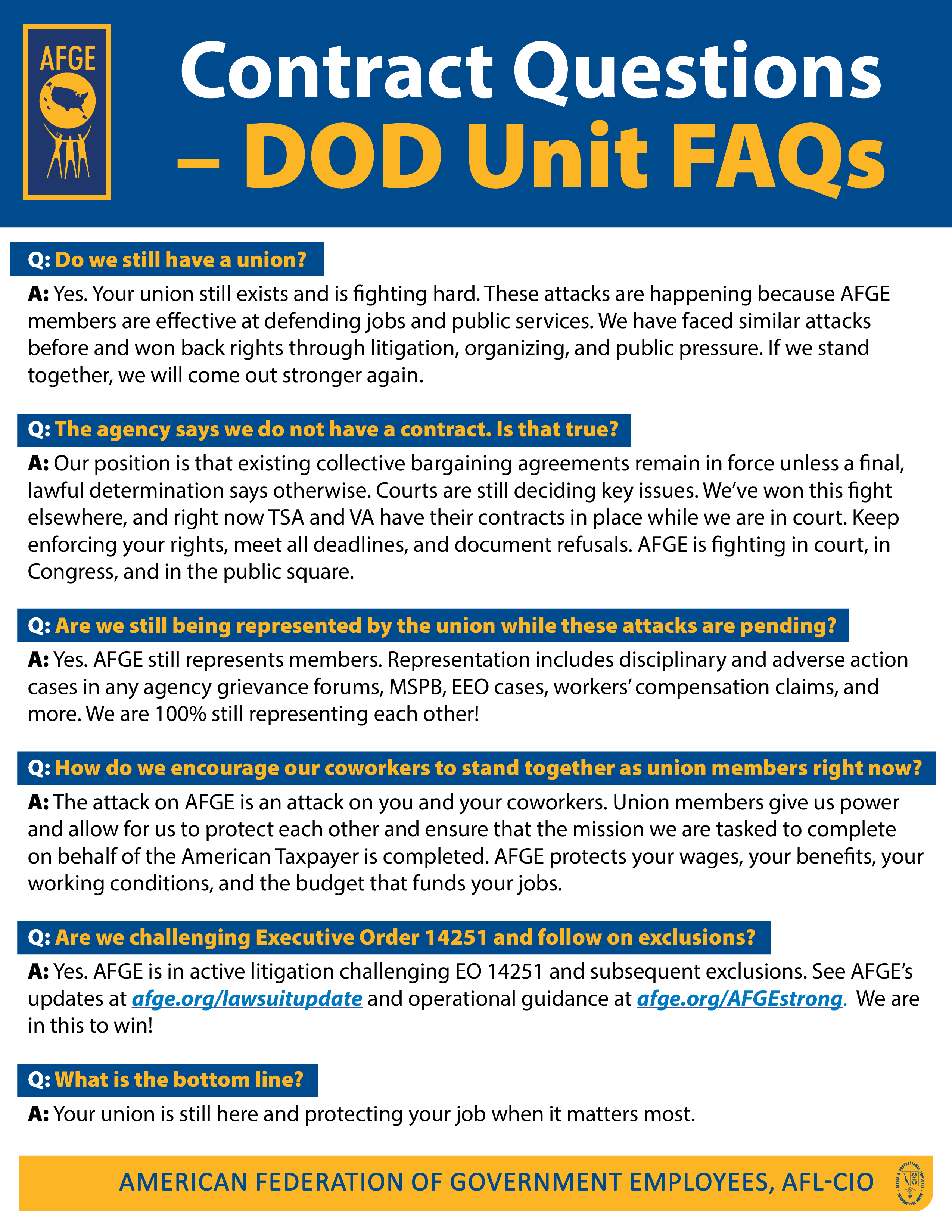 AFGE’s going to keep fighting for you in the courts, in the halls of Congress, in the media, and in the streets until you get the respect you deserve.